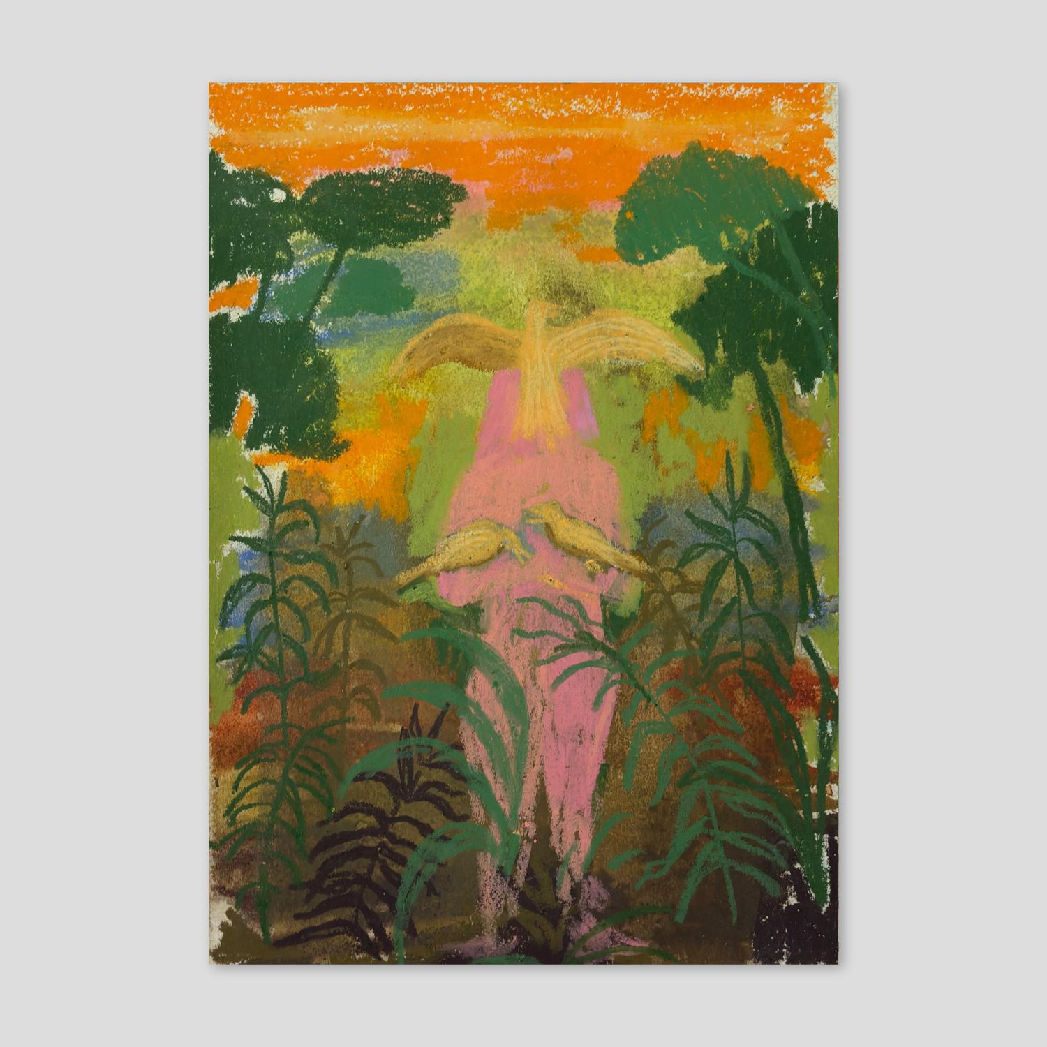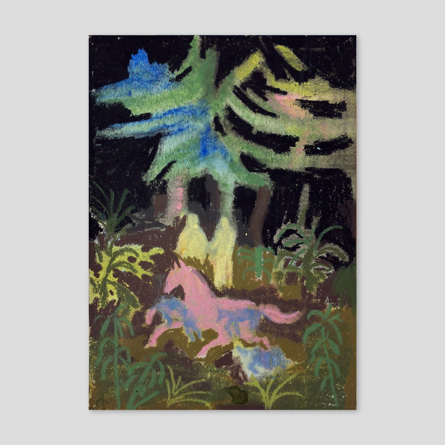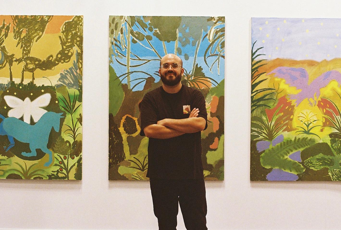 The painting of Agus Díaz Vázquez inhabits a symbolic territory where the ancestral and the contemporary engage in dialogue through stillness. His work, deeply rooted in the South as a state of mind rather than a geography, explores the connections between memory, nature, and myth. In his scenes, time seems to suspend itself, giving way to a cyclical narrative in which symbols such as the moon, the horse, and feminine energy act as guides toward an origin that is also a destination.